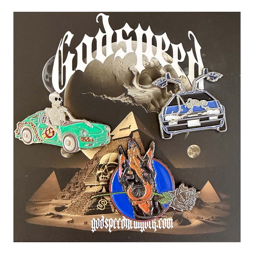 The Godspeed 4ever trucker hat is back in turquoise & black packaged in a limited edition box + a 3 piece pin set.